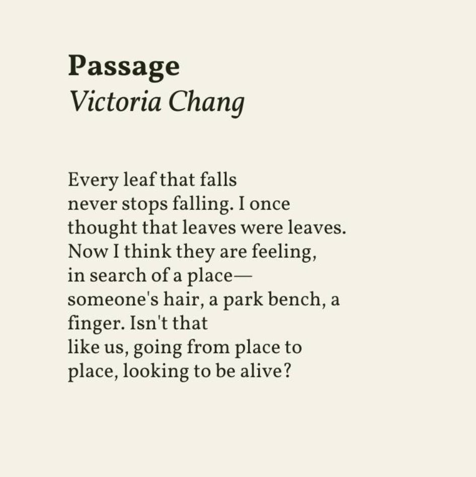 [from] The Trees Witness Everything by Victoria Chang, published by Copper Canyon Press, 2022.